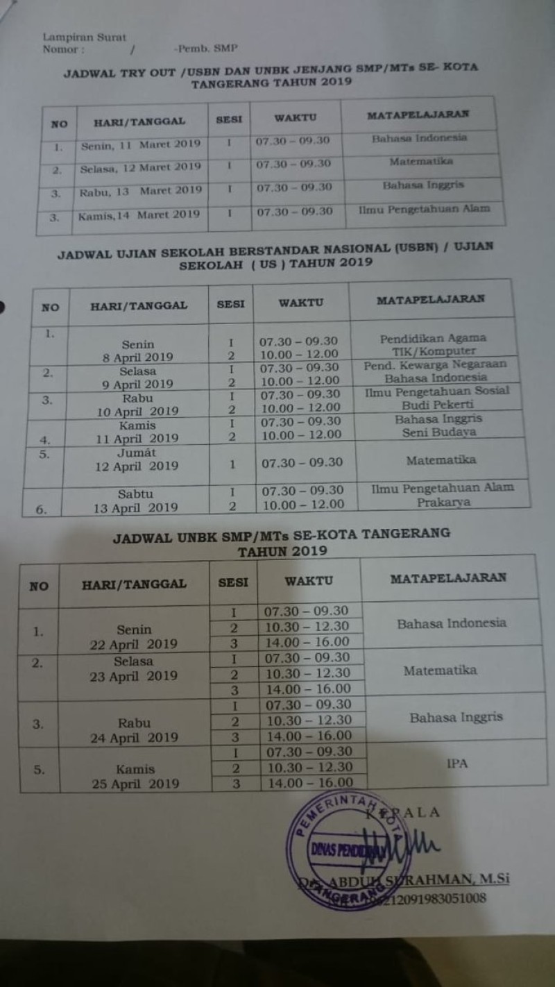 Jadwal tryout, USBN, Ujian Nasional